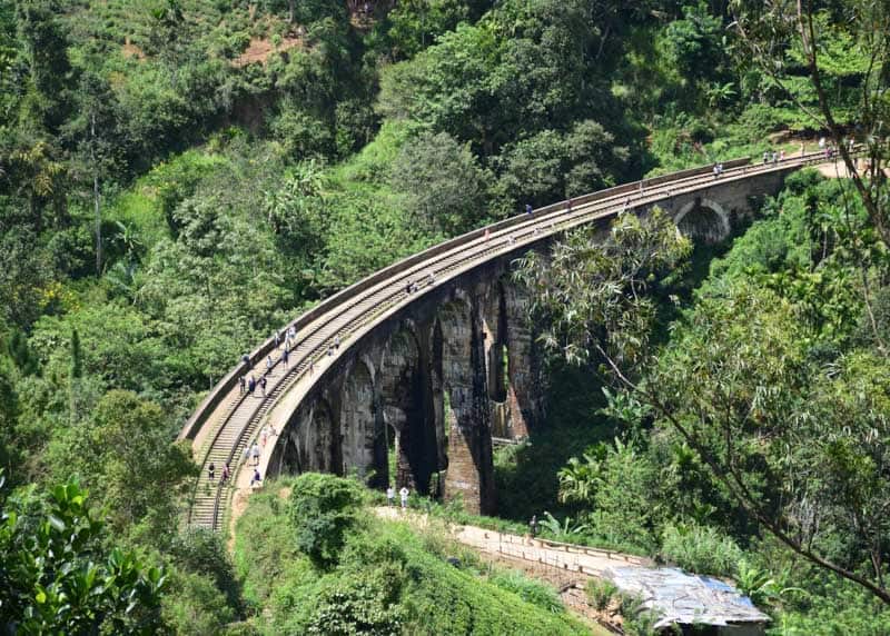 Имея одноименные девять арок, он мягко прогибается через ущелье между Эллой и Демодарой. Вокруг него возвышаются холмы с соснами и кокосовыми пальмами, а мозаика чайных кустов падает в булькающую реку. В результате получается структура, которая выглядит почти органично по своей природе.